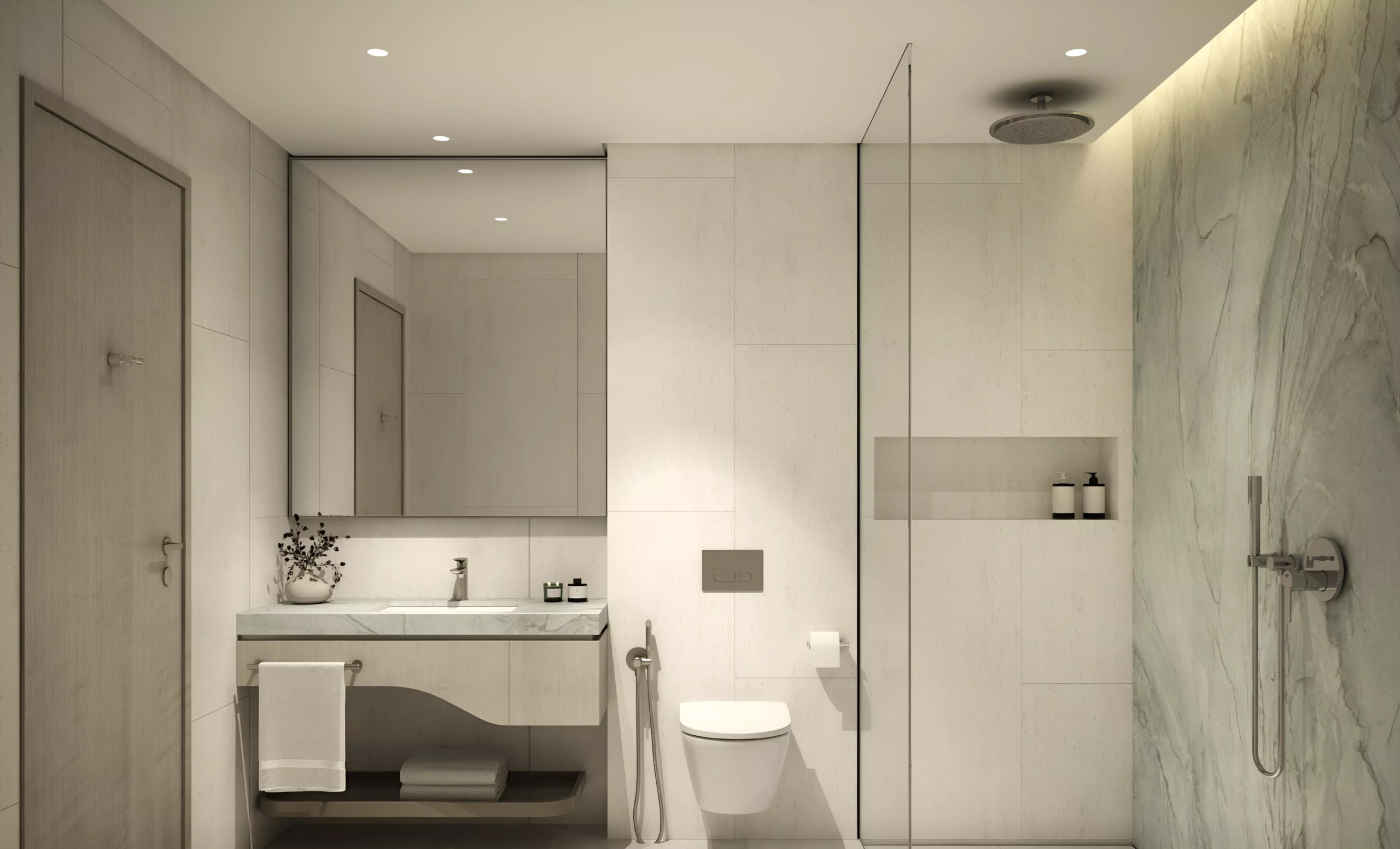 Nourelle’s architecture emphasises clean lines, premium materials, and a strong connection to its seafront setting. The sky-bridge links the towers and hosts communal sky gardens and leisure facilities, offering elevated views of the sea and skyline. Large floor-to-ceiling windows, generous balconies, and open-plan layouts maximise natural light and vistas.