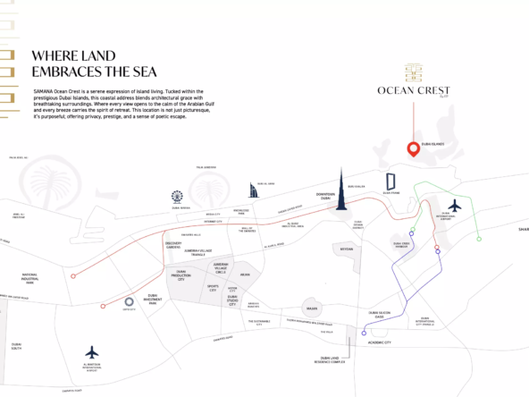 Samana Ocean Crest is a boutique residential project by Samana Developers located on Dubai Islands, offering premium 1- to 4-bedroom apartments, many with private pools or expansive terraces. The development emphasises waterfront living, resort-style amenities and a low-density luxury experience.