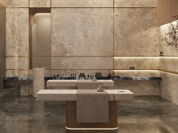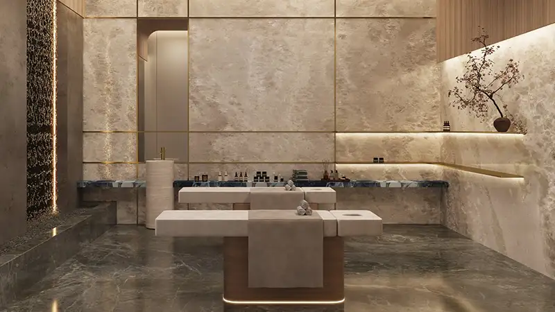 - Infinity-edge pools, outdoor sun deck, children’s play zones and landscaped green areas.