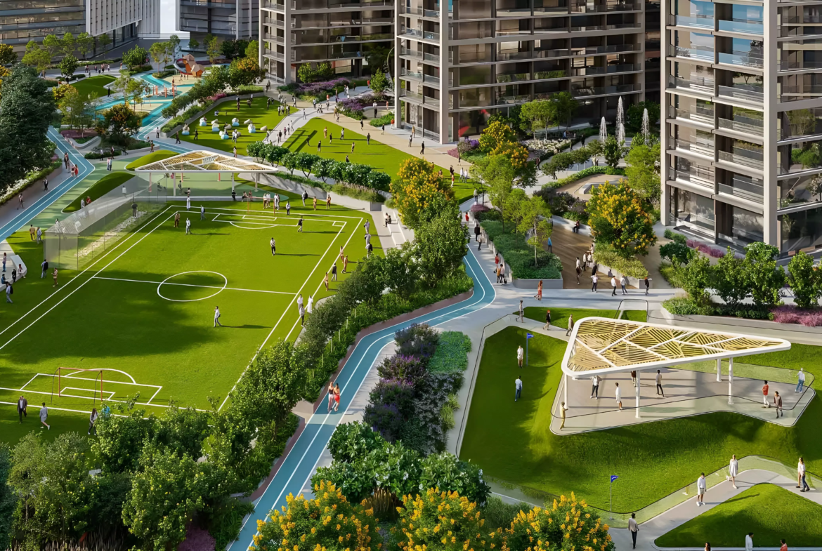 - Elevated podium and rooftop parks, landscaped gardens and wellness zones.